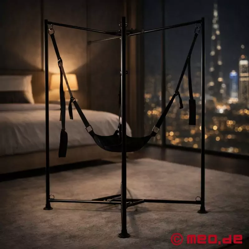 A MEO® "Sling Stand Kit" a teljes készlet az intenzív szexhez egy slingben: kicsomagolni, felállítani, élvezni! A sling stabilan és kényelmesen pozícionálja a testét, és szabad hozzáférést biztosít partnere számára az intim területéhez - a nagyobb kényelem, az irányítás és az érezhetően mélyebb behatolás érdekében.