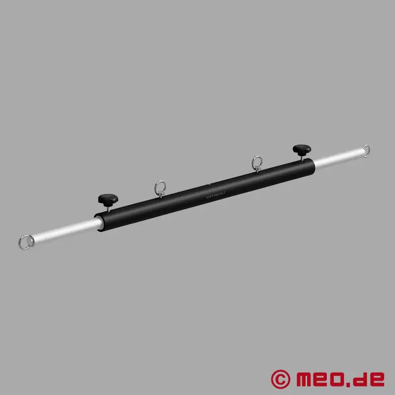 Più controllo. Meno libertà di movimento. Più bondage. La nostra barra divaricatrice regolabile offre nuove possibilità di controllo, limitando al massimo i movimenti del partner sottomesso per un piacere ancora più intenso nel bondage. Questa barra innovativa è l'elemento chiave per immobilizzazioni rigorose e scenari BDSM creativi. Si regola in modo telescopico e continuo da 60 a 110 cm, esattamente come desideri. Realizzata in alluminio lucidato e verniciato a polvere e in acciaio inox, la barra di alta qualità è robusta e resistente. Grazie ai suoi quattro punti di fissaggio, offre la massima flessibilità per diverse posizioni: orizzontale davanti al corpo, verticale tra le gambe o in versione "gogna" (pillory). I quattro punti di fissaggio consentono di collegare contemporaneamente manette e cavigliere, permettendoti di dare libero sfogo alle tue fantasie di bondage senza compromessi.