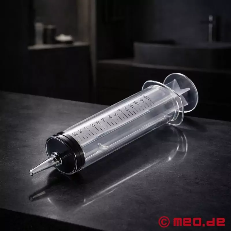 Con una capacità di ben 150 ml, l'enorme siringa per clistere GRANDEZZA, affettuosamente nota anche come “pompa per il culo”, offre il modo migliore per pompare fluidi nell'ano in modo mirato e preciso. Non c'è da stupirsi che tutte le fantasie segrete prendano vita alla vista di questa siringa così speciale.