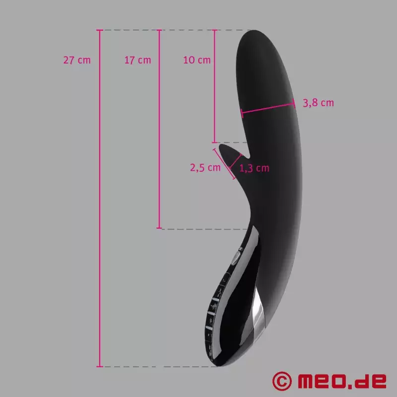 Con il suo corpo lungo 27 cm e largo fino a 4,3 cm, realizzato in silicone platinico di alta qualità, si adatta delicatamente ma con decisione al tuo corpo e alla tua intimità. Le superfici conduttive, integrate con cura, generano un formicolio profondo e uniforme che si diffonde nelle tue zone più intime fino a quando l'orgasmo ti travolge completamente.