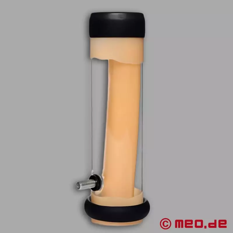 Collegato alla nostra mungitrice e attraverso l'alimentazione e l'aspirazione alternata dell'aria all'interno del cilindro, si creano movimenti autonomi di salita e discesa. Grazie a questa tecnica è possibile raggiungere l'orgasmo senza toccarti te stesso.