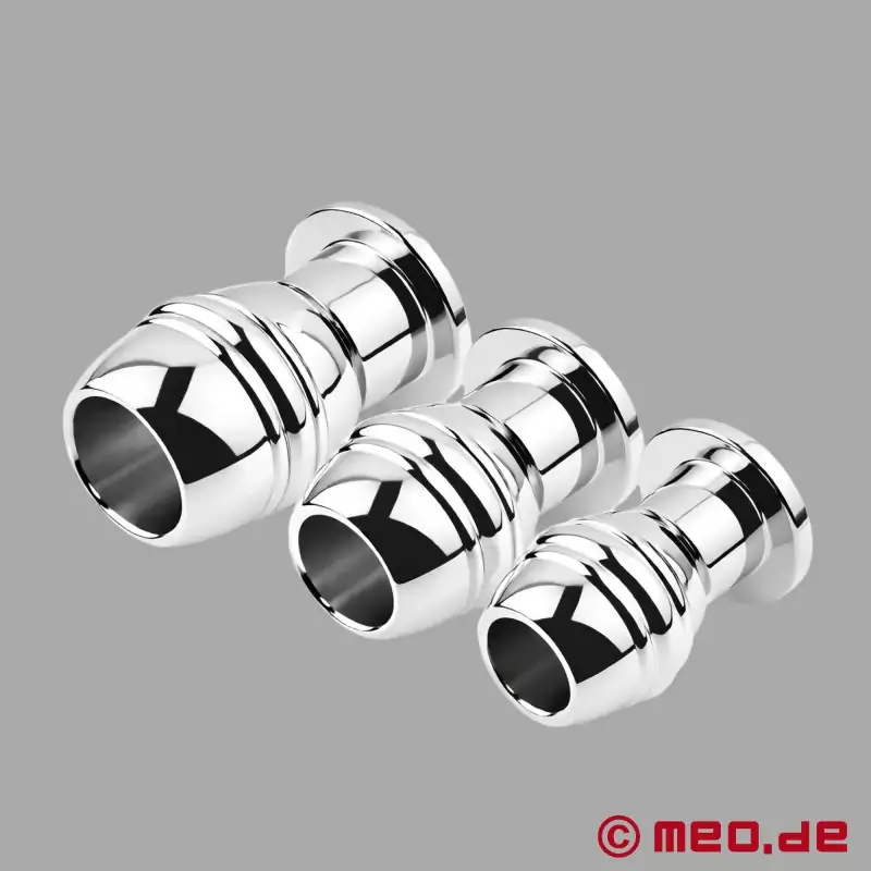 BelleVue™ di MEO® è un plug anale a tunnel in alluminio lucidato. Mantiene l'ano ben aperto, consentendo viste davvero particolari e applicazioni molto versatili. L'apertura passante, il materiale di alta qualità e le tre diverse misure lo rendono un sex toy straordinario per la dilatazione anale e per intense sessioni BDSM.