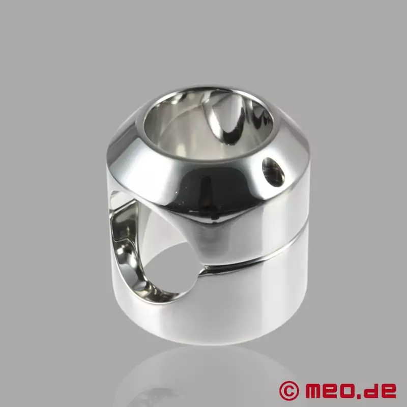 De Chubby Cock Lock 2.0 is allesbehalve een gewone cockring. Dit tweedelige Duitse meesterwerk van massief roestvrij staal combineert een stevige cockring met een nauwsluitende ball stretcher. Samen omsluiten ze de penis en testikels in een hoogglans gepolijste, anatomisch gevormde stalen kamer!
