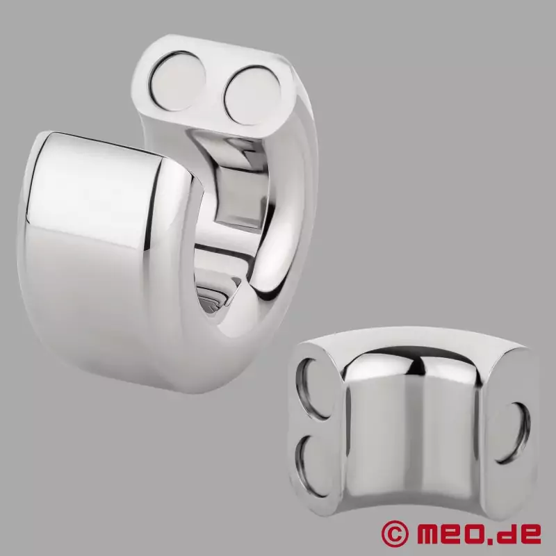 De MagnoStretch magnetic ball stretcher is gemaakt van stevig, hypoallergeen roestvrij staal, dat bekend staat om zijn duurzaamheid en veiligheid. Door het tweedelige ontwerp is de magnetische ball stretcher gemakkelijk aan en uit te trekken, terwijl de geïntegreerde neodymium magneten zorgen voor een sterke en stevige grip. Dit innovatieve ontwerp zorgt ervoor dat de magnetische ball stretcher stevig op zijn plaats blijft zitten, zelfs tijdens intense geslachtsgemeenschap.