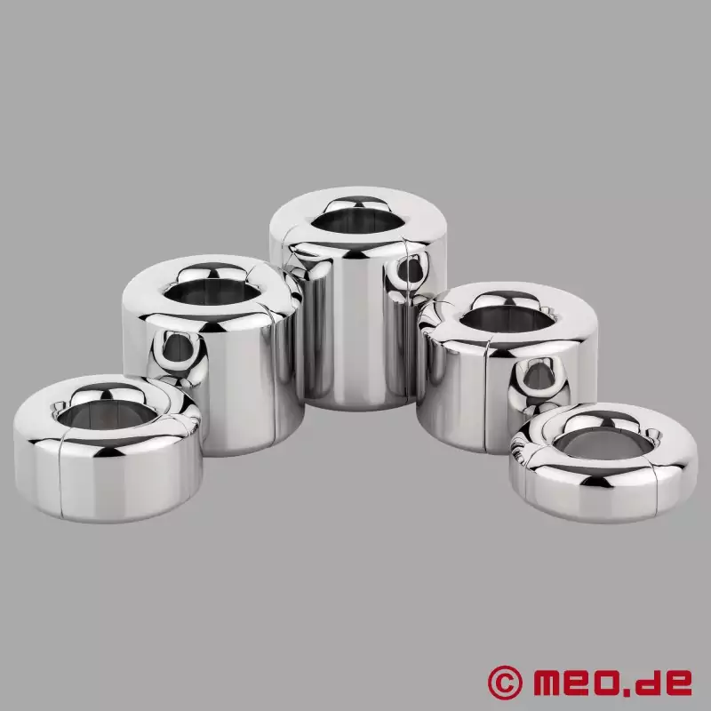 MagnoStretch is een tweedelige, nauwkeurig ontworpen, magnetische ball stretcher van hoogwaardig roestvrij staal die uitzonderlijk comfort en effectieve stretching van het scrotum biedt. Met de geïntegreerde neodymium magneten biedt deze ball stretcher een veilige en betrouwbare houvast die zelfs de meest intense sessies kan weerstaan. Verkrijgbaar in 55 verschillende maten en gewichten!