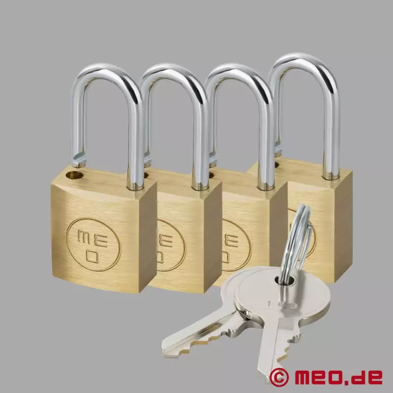 Het populaire bondage-accessoire bestaat uit vier stevig bevestigde, comfortabel gevoerde leren boeien en een stabiele verbindingsunit die de polsen en enkels in een duidelijke gespreide positie houdt. De handboeien en enkelboeien zijn in maat verstelbaar, robuust gemaakt en ontworpen voor langere bondagesessies. De bovenste riemen hebben afsluitbare stalen gespen met een opening voor een hangslot. De set bevat vier hangsloten die op dezelfde manier vergrendelen, zodat zowel de handboeien als de enkelboeien veilig kunnen worden afgesloten met slechts één sleutel.