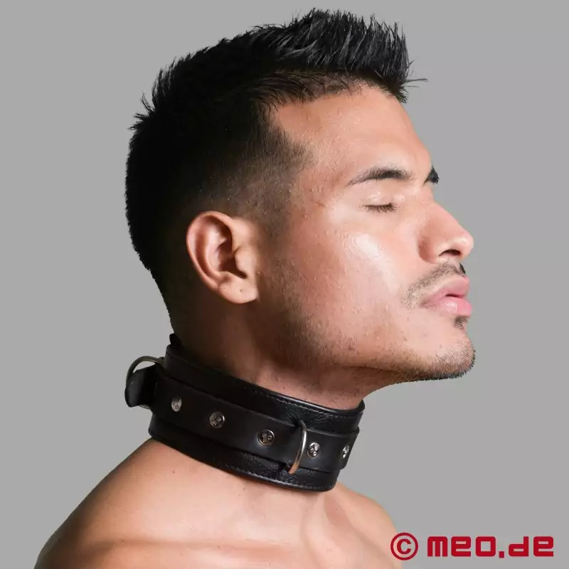Door de extra breedte ziet de BDSM halsband er nog indrukwekkender uit en wordt de nek desgewenst nog meer ingesnoerd. Dit leidt tot een intenser gevoel van onderwerping tijdens een bondagesessie, wat voor veel BDSM-sessies een zeer opwindende ervaring is. Onze bredere, gevoerde BDSM halsband met 3D ringen is gemaakt van hoogwaardig kalfsleer en wordt gekenmerkt door hetzelfde precisie vakmanschap als onze klassieke BDSM halsband. Al bijna 20 jaar zijn de MEO BDSM kragen uit Duitsland het meest populaire bondage accessoire onder mannen en vrouwen, beginners en professionals - en dat is niet voor niets. De kwaliteit en afwerking zijn ongeëvenaard en de veelzijdigheid maakt deze BDSM halsbanden tot een onmisbaar accessoire voor bondage fans over de hele wereld.