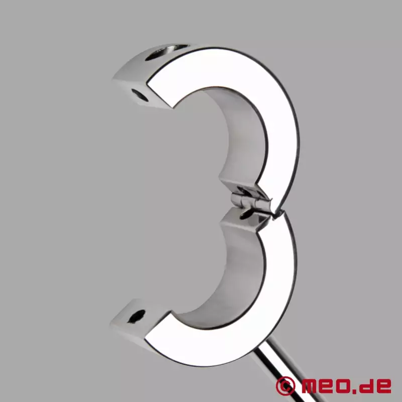Zet je partner vast in het meest gevoelige deel van zijn lichaam - zijn testikels - betrouwbaar en compromisloos! Onze Balls_Lockdown™ van het beste roestvrij staal laat hem geen kans om te ontsnappen, maar dwingt hem precies daar waar jij hem hebben wilt: onder jouw totale controle en naar jouw absolute tevredenheid.