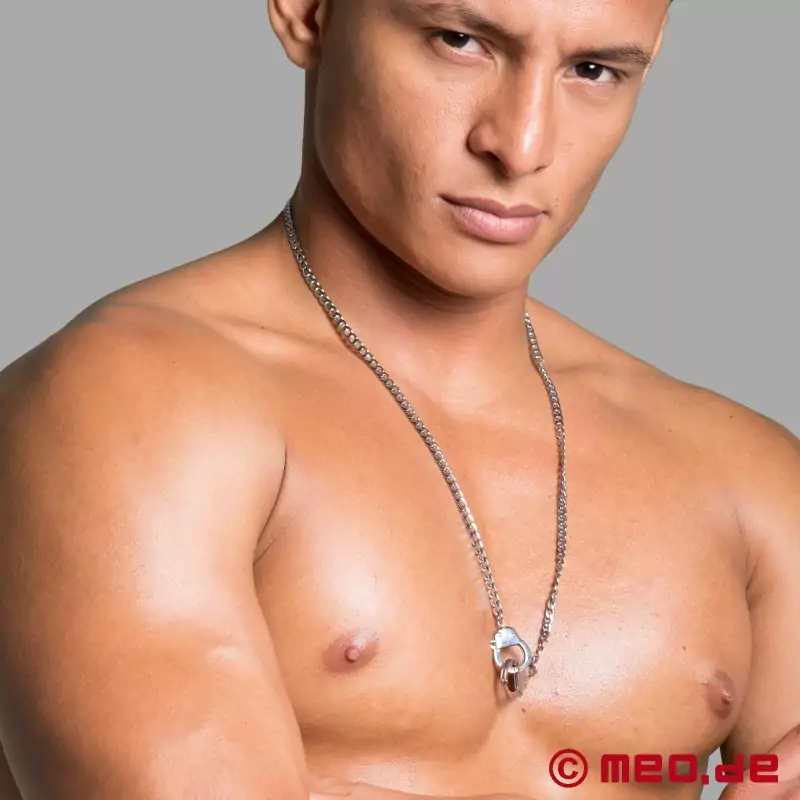MEO®'s zware roestvrijstalen krulketting met handboeisluiting is een prachtig, mannelijk BDSM statement.