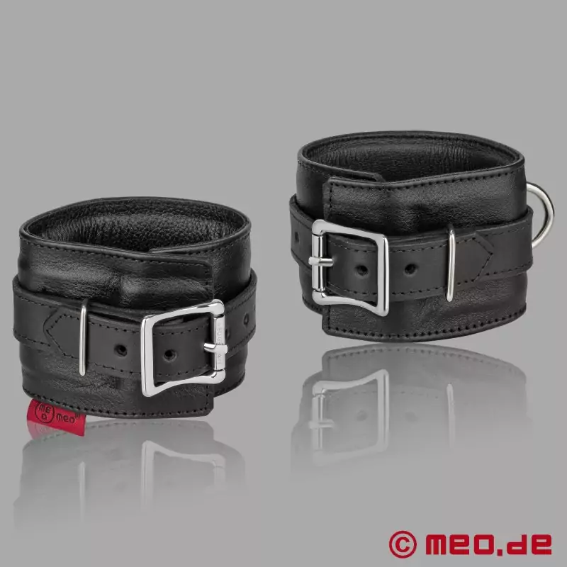 De enkelboeien zijn gemaakt van echt, generfd rundleer van hoge kwaliteit, zijn volledig gewatteerd en gevoerd met leer. Dit zorgt voor een aangenaam zacht gevoel op de enkel zonder dat dit ten koste gaat van een veilige, strakke pasvorm - ideaal voor langere bondagesessies.