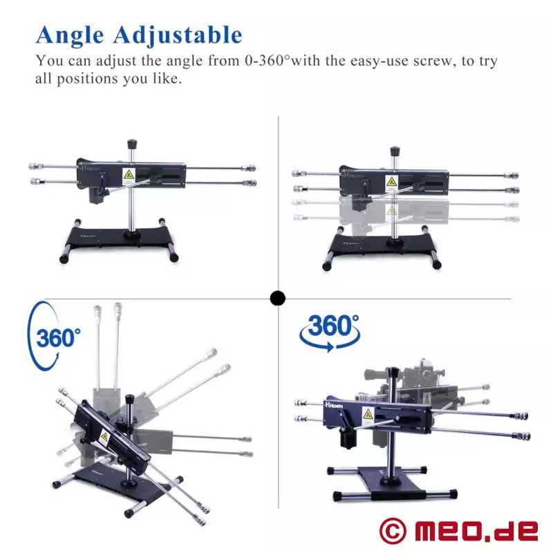De HiSmith Quadruple Penetration Sexmachine 360 Premium is ontworpen voor afwisseling en zal de honger van zelfs de gulzigste gaten stillen! Hij is ideaal voor paren omdat hij de perfecte stoten levert aan beide partners tegelijk en gesynchroniseerd. Met zijn extreem krachtige motor is deze fantastische seksmachine meedogenloos in zijn missie om iedereen te bevredigen! Hij bereikt maar liefst 240 stoten per minuut en is ideaal voor BDSM-sessies. Degene die de leiding heeft, kan toekijken hoe zijn lustslaaf wordt 'gebruikt' tot hij niet meer kan! De HiSmith Quadruple Penetration seksmachine is 360 graden verstelbaar en maakt verschillende standjes mogelijk - de mogelijkheden zijn echt eindeloos. Hij wordt zelfs geleverd met twee siliconen dildo's zodat je meteen aan de slag kunt!
