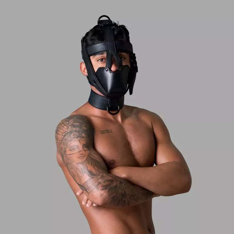 Het hoofdharnas en de geïntegreerde halsband zijn uitgerust met vier strategisch geplaatste D-ringen die verschillende bevestigingsmogelijkheden bieden. Aan deze D-ringen kun je kettingen, touwen of andere BDSM accessoires bevestigen.