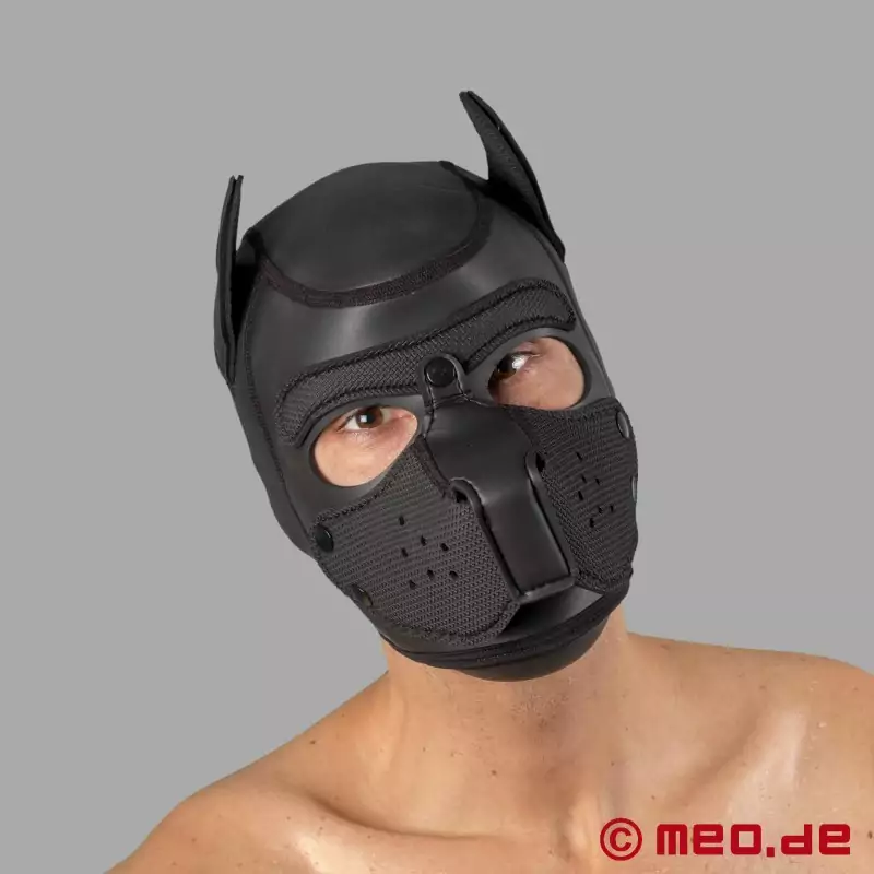 Met dit zwarte neopreen masker verander je jezelf of je partner in een handomdraai in een gehoorzame maar zelfverzekerde Human Pup - de perfecte "Human Pup". Het zachte, elastische neopreen hondenmasker van Bad Puppy past perfect om het hoofd zonder vervelende ritsen of veters aan de achterkant van het masker.