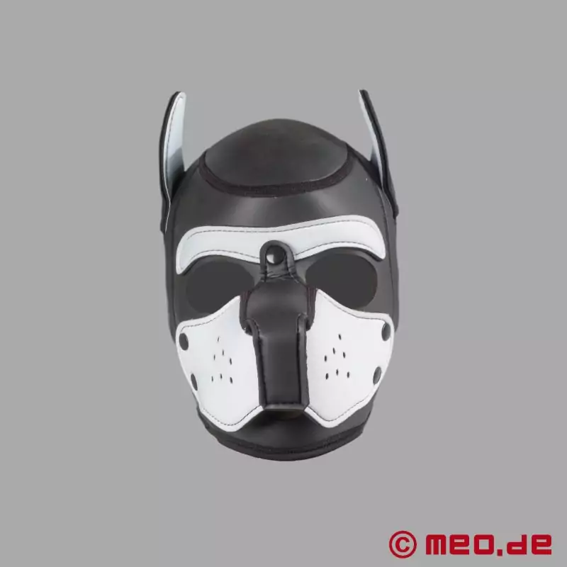 Laat altijd en overal zien dat je een goede mensenpup bent! Het Bad Puppy® neopreen masker in zwart en wit staat voor loyaliteit, duidelijke signalen en een klassieke look. Het hondenmasker is gemaakt van zacht neopreen, heeft een afneembare snuit en biedt perfect draagcomfort - voor iedereen die zijn rol in Human Pup Play serieus neemt.