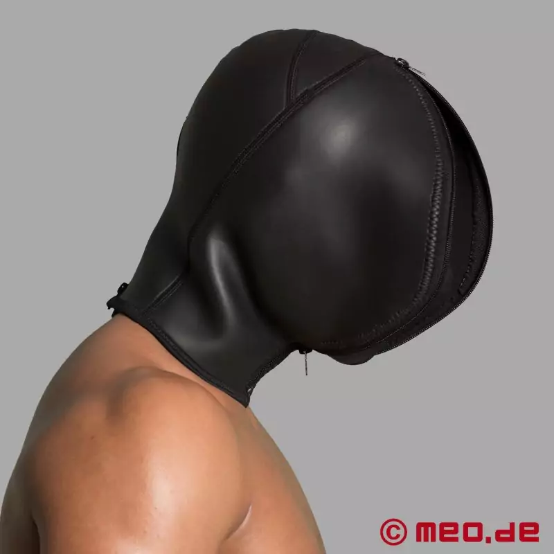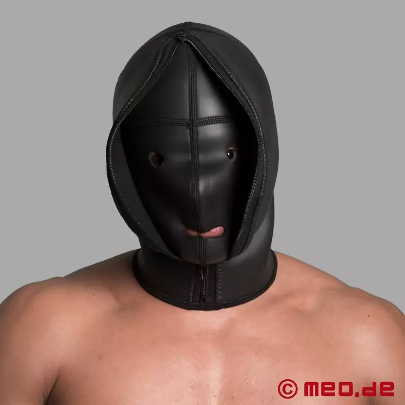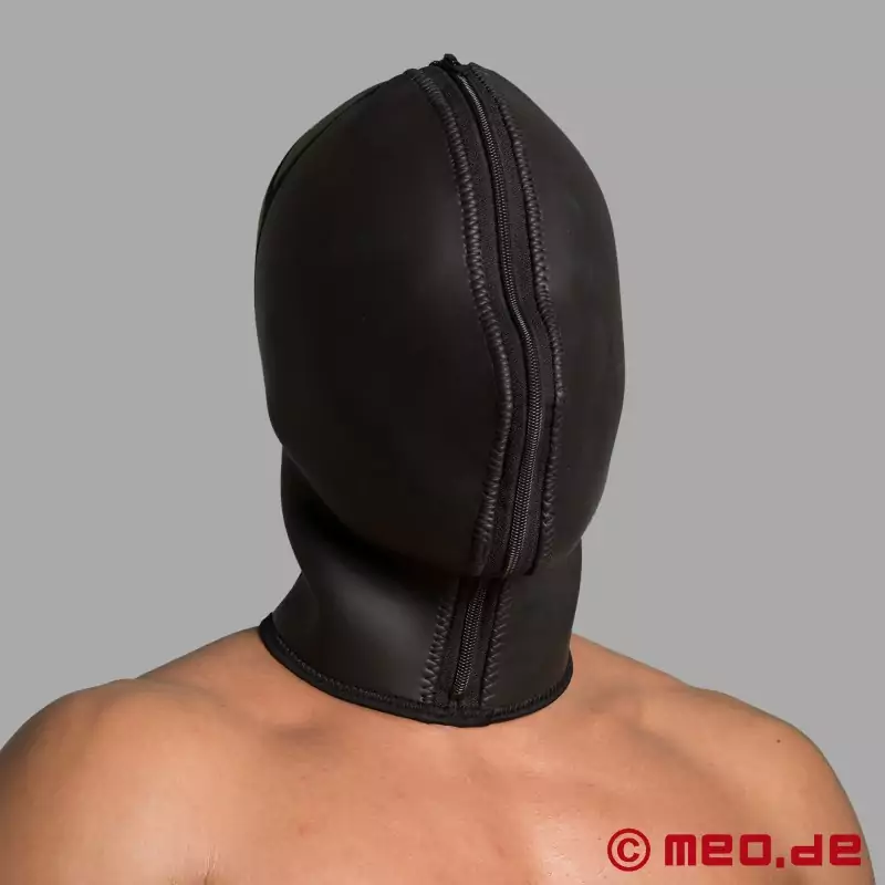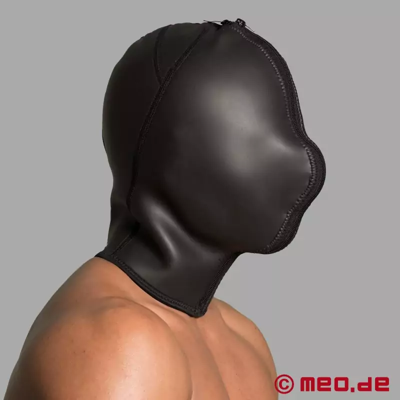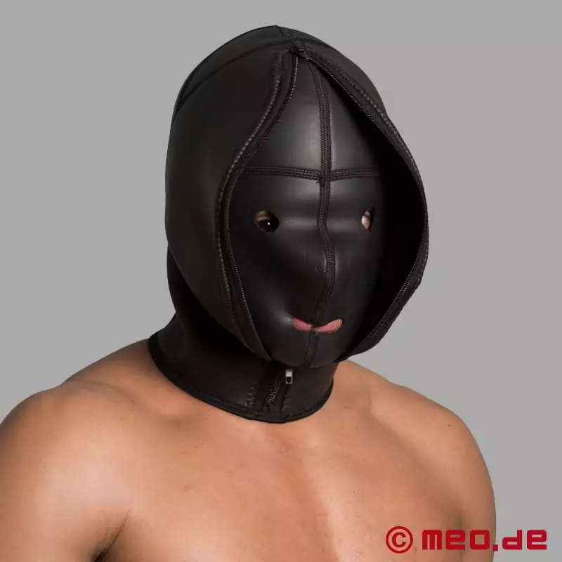Uitgebreid vervaardigd neopreen masker dat je hoofd volledig en strak omsluit - met of zonder zicht. Precies zoals je wilt of verdient.