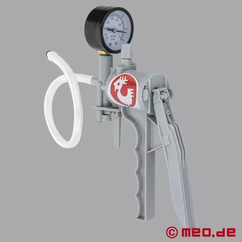 Deze robuuste, professionele handpomp van Dr. Cock is speciaal ontwikkeld voor de hoogwaardige vacuümcilinders uit de DRCO™ serie. Dankzij de ergonomische schaargreep kun je precies het vacuüm opwekken dat nodig is voor een effectieve penisvergroting door vacuümtherapie - betrouwbaar, gecontroleerd en met maximaal comfort.