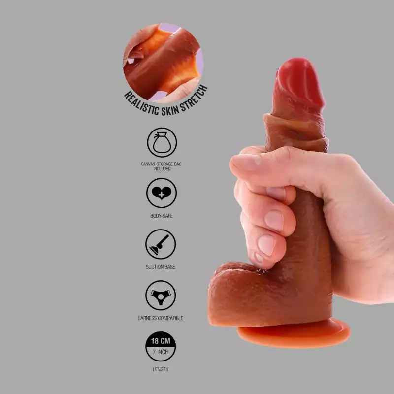 Dankzij de innovatieve dual-density technologie glijdt de zachte huid moeiteloos over de hardere penisschacht en biedt een natuurlijke ervaring die heel dicht in de buurt komt van het echte werk. De dildo van hoogwaardig siliconen maakt indruk met zijn realistische oppervlak, dat aanvoelt als echte huid, en de beweegbare voorhuid, waardoor het de ideale vervanging is voor een echte penis - een absoluut unieke dildo die je niet mag missen!