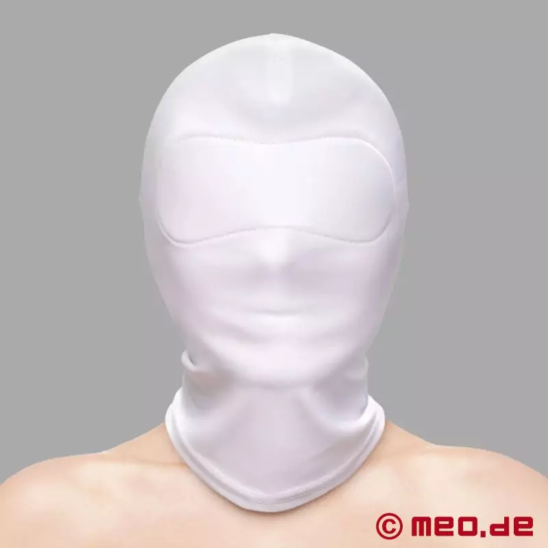 Dit witte spandex masker zorgt voor absolute duisternis en maakt van elke BDSM-sessie een extreem intense ervaring. Het volledig ondoorzichtige, versterkte ooggedeelte blokkeert alle licht, terwijl het elastische spandex/nylon materiaal goed om je gezicht past en je waarneming volledig richt op aanraking, geluiden en lichamelijkheid.