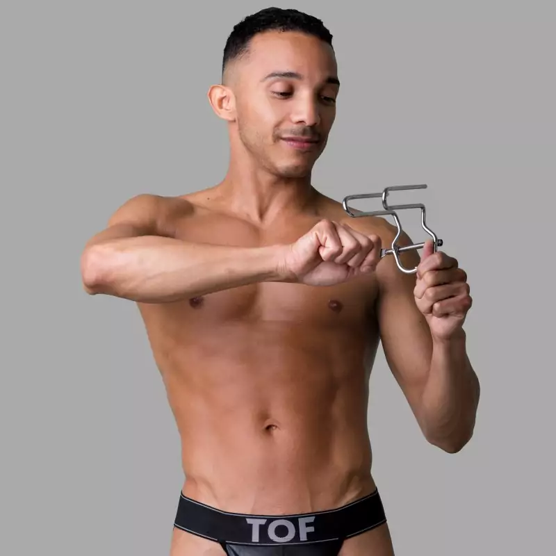 De anale spreider biedt ook mogelijkheden voor creatieve en sensuele experimenten zoals elektrostimulatie, temperatuurspel of lichte billenkoek, die direct op deze zeer gevoelige plek kunnen worden toegepast. De combinatie van uitrekken, verwijding van de anus en onderwerping creëert een intens opwindende ervaring die zowel lichaam als geest raakt.