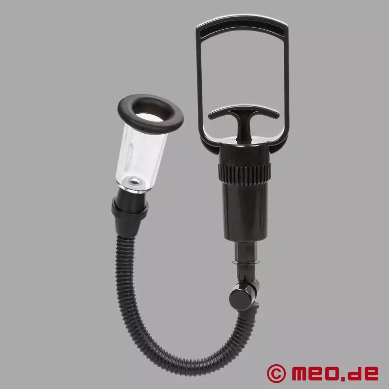 Als je de cilinder van de vacuümpomp voorzichtig op je anus plaatst en op het handvat drukt, ontstaat er onmiddellijk een opwindende vacuümzuiging. De anus opent zich langzaam en aangenaam onder de voortdurende vacuümdruk. Met elke volgende ruk aan de hendel voel je hoe het vacuüm je sluitspier verder stimuleert en hem opener, ontvankelijker en ongelooflijk gevoelig maakt. Deze intense vacuümervaring bereidt je perfect voor op anale penetratie, grotere dildo's of fisting. Maar je kunt ook gewoon genieten van het plezierige gevoel van het vacuüm totdat je naar meer verlangt.