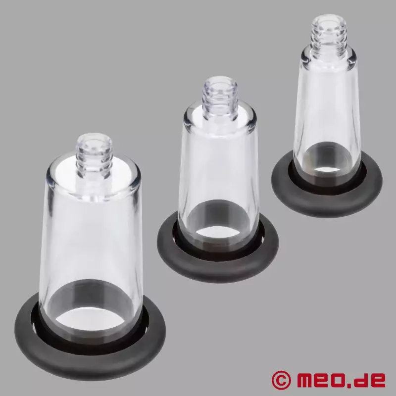 De drie cilinders in verschillende maten (Ø 1,25 cm, 2,0 cm en 2,5 cm) passen zich perfect aan aan verschillende delen van het lichaam en maken pinpoint stimulatie mogelijk. Elke cilinder heeft een elastische, afneembare afdichtring die zorgt voor een goede afsluiting en meer comfort. De ergonomische pomphendel ligt goed in de hand en maakt fijne controle over het vacuüm mogelijk. De flexibele slang zorgt voor een veilige verbinding tussen de cilinder en de pomp, terwijl het geïntegreerde ontluchtingsventiel een snelle en gecontroleerde drukontlasting mogelijk maakt.