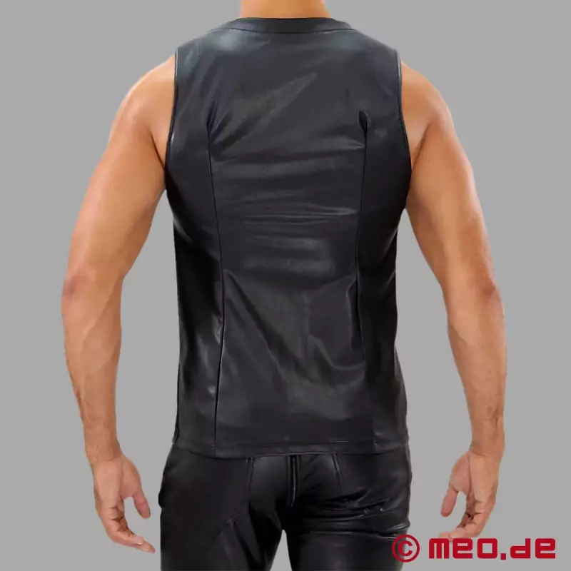 Top in vorm! De tank top van TOF Paris laat de spieren optimaal tot hun recht komen. De zachte kwaliteit is overtuigend en biedt het hoogste draagcomfort. Deze chique tanktop met rits in fetisjstijl is ultra-sexy. Het is gemaakt van ongelooflijk levensecht imitatieleer. Door de hoge kwaliteit van het gebruikte materiaal is het verschil op het eerste gezicht bijna niet te zien
