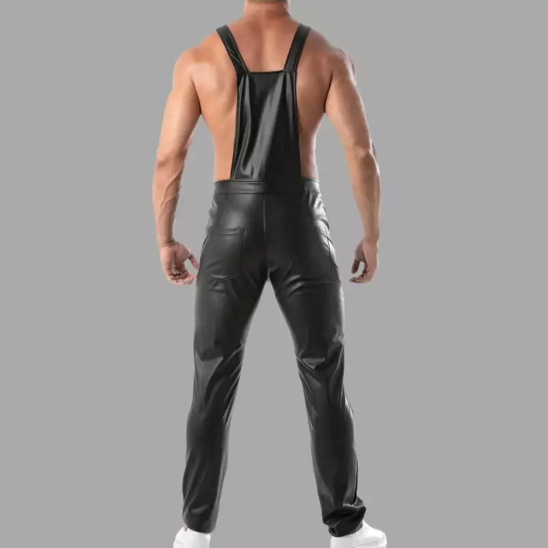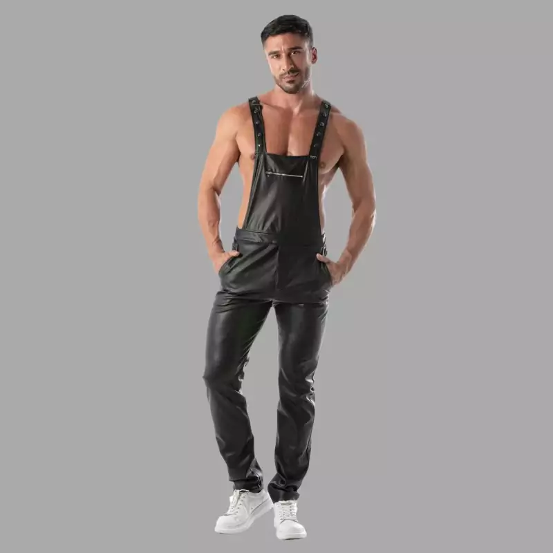 Duik in de wereld van fetisj met deze prachtige jumpsuit van synthetisch leer, gemaakt in samenwerking tussen TOF Paris en MEO. Deze jumpsuit combineert mannelijk design met praktische functionaliteit en een vleugje Franse verfijning.