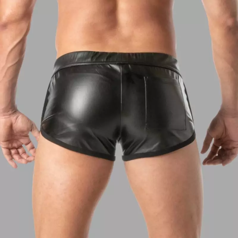 Ultrakorte leren shorts die elke sexy ronding van je lichaam laten zien dankzij het push-up effect. Deze shorts van synthetisch leer zijn het resultaat van een creatieve samenwerking tussen TOF Paris en MEO en combineren mannelijke stijl met Franse flair en alledaagse functionaliteit!