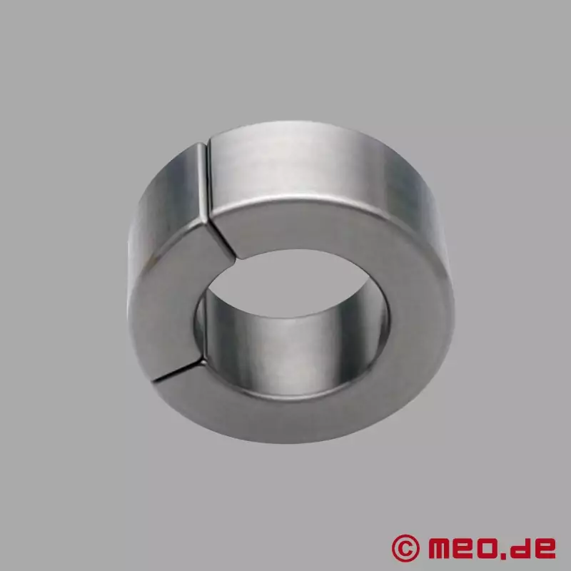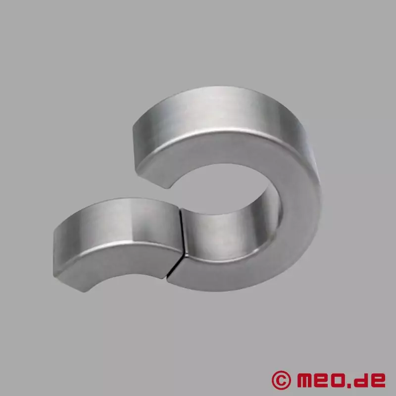 OhSoEasy® magnetisk ballstrekker i solid rustfritt stål er en testikkelvekt for alle som elsker vekt, tøyning og en intens, gripende følelse på pungen og testiklene. I motsetning til konvensjonelle ballstrekkere med unbrakoskruer og unbrakonøkler, er OhSoEasy® ballstrekkeren rask og enkel å sette på og ta av takket være de integrerte, sterke neodymmagnetene. Det betyr at den kan settes på og tas av på få sekunder - uten fikling, verktøy eller stress.