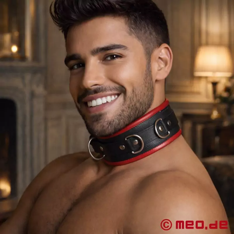Maksimal funksjonalitet kombinert med et klassisk vakkert design! Resultatet: et BDSM-halsbånd i uttrykksfulle farger som ikke bare ser bra ut og er veldig behagelig å ha på, men som også imponerer med sin rimelige pris. Det svart/røde BDSM-halsbåndet er utstyrt med ringer som kan brukes til å feste et bånd eller kjettinger.