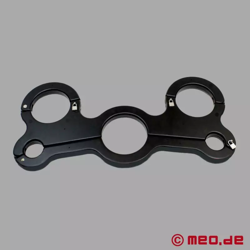BDSM-møbelet vårt er en solid konstruksjon, lik en gapestokk, der vi har festet hånd- og fotlenker og en åpning for hodet. Du kan bruke våre vanlige hengelåser for å låse den. Alternativt kan du også bruke våre digitale MEOBOND-tidslåser for selvbondage. MEOBOND-tidslåsen er spesielt egnet for selvbondage og sørger for at brukeren først kan frigjøre seg etter en forhåndsbestemt tid (maks. 100 timer). KLIKK HER.