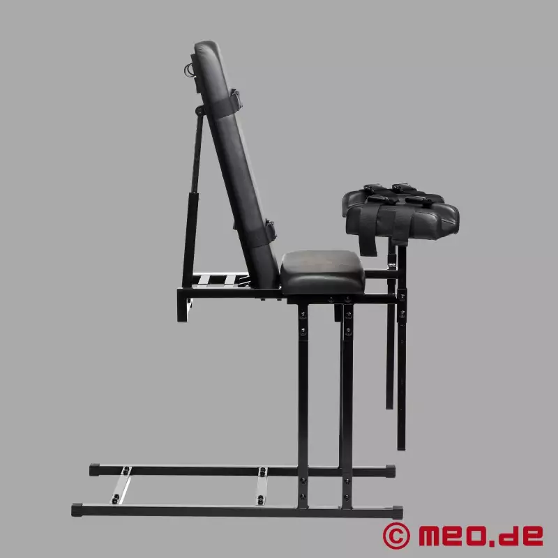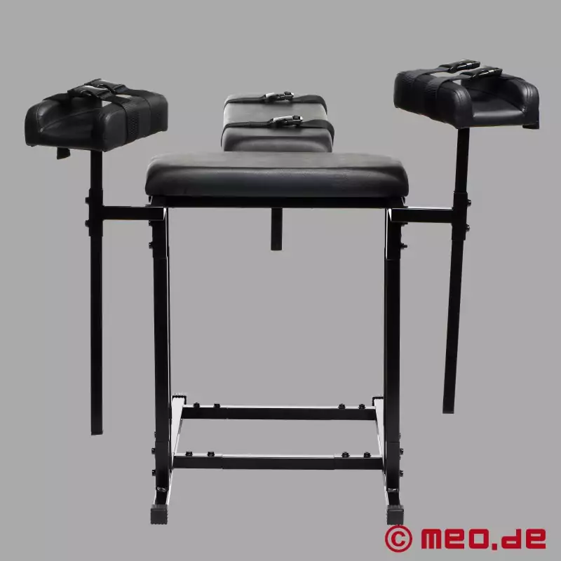 Alle støttene er komfortabelt polstret og behagelige. Selv om du ikke bruker den profesjonelle BDSM-gynekologistolen "Extreme Obedience" sammen med en partner, kan du fortsatt bruke den til selvbinding med våre elektroniske MEOBond-tidslåser eller med en av våre sexmaskiner.