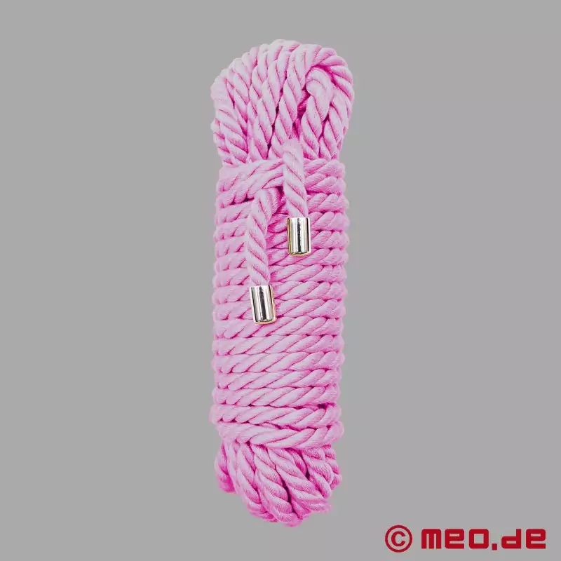 Det rosa bondagereipet er laget av 100 prosent bomull som er flettet på en intrikat måte. Det skjærer ikke inn i huden og er behagelig selv under langvarig bondage. Det profesjonelle tauet har også høy strekkfasthet, er ekstremt robust og endene er forseglet med endekapper. Det er tilgjengelig i ulike farger og lengder på 5, 10 og 20 meter.