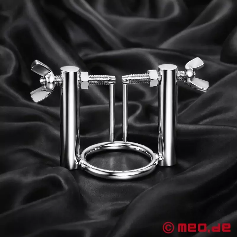 Just place it inside of the urethra and turn the knobs to widen. Each side has its own knob so you can adjust as you see fit. Get that area nice and wide for jewelry, plugs, or other devious decisions you have in store.
