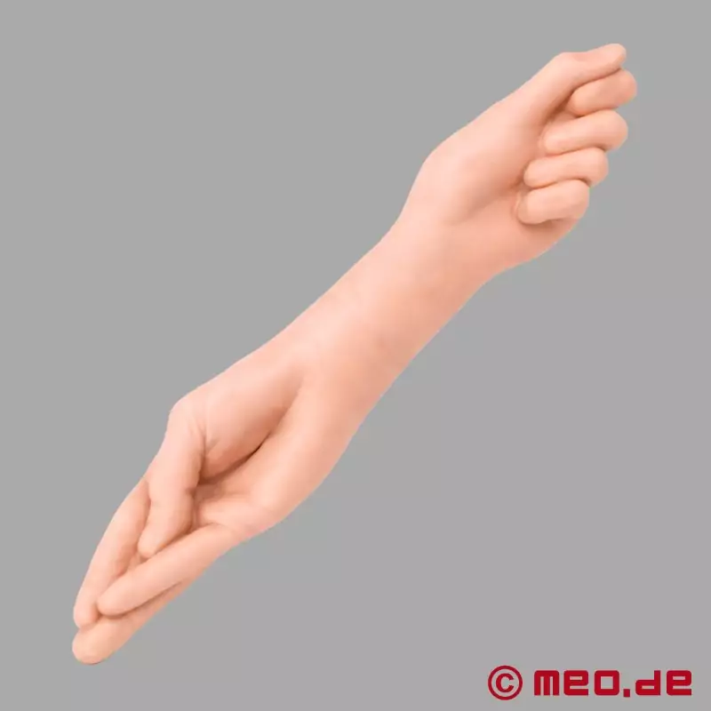 Bruk rikelig med et av de høykvalitets hybride glidemidlene som GloryHole® eller ManCunt™. Begynn med den smale håndformen og før dildoen sakte og forsiktig inn. Ta deg tid til å forberede kroppen på anal eller vaginal tøyning. Så snart det passer, kan du gå videre til den andre hånden, den knyttede neven. Den gir maksimal fylde og en uforlignelig intens følelse.