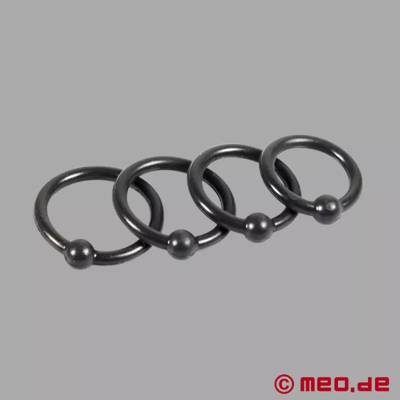 Vårt sett inneholder fire fleksible silikon glansringer i forskjellige størrelser. Dette garanterer perfekt passform og høy bærekomfort under sex.