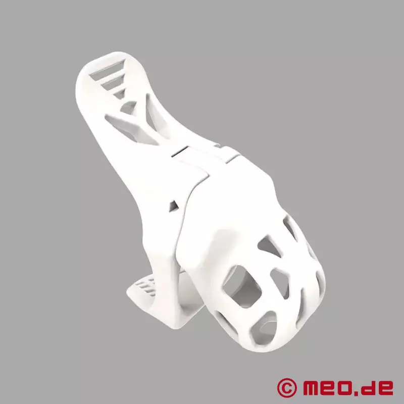 NoPacha® Ventra™ i hvitt imponerer med sin kompromissløse sikkerhet, høye bærekomfort og diskrete, elegante utseende. Enten det gjelder langvarig kyskhet, intens BDSM-rollelek eller diskret hverdagsbruk - dette kyskhetsburet oppfyller de høyeste krav.