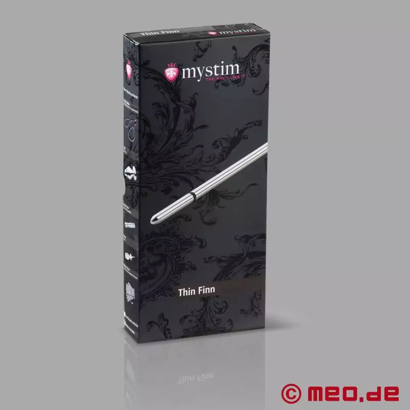Thin Finn™ fra Mystim er ideell hvis du ønsker å oppleve intens elektrostimulering dypt i urinrøret og drive deg selv til uforglemmelige orgasmer. 25 cm lang, 8 mm i diameter, 40 g lett - som skapt for nytelse. Thin Finn™ er en penisdilatator av høy kvalitet for målrettet urinrørsstimulering ved hjelp av elektriske impulser - skånsom i starten, men intens i sin effekt. E-Stim-penispluggen er utviklet av Mystim i Tyskland, laget av håndpolert aluminium og med nøyaktig definert polaritet, og gir elektrifiserende nytelse akkurat der det er mest behagelig: dypt inne i urinrøret.