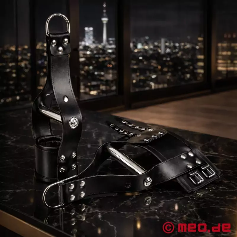Disse nye opphengte håndjernene fra MEO er rett og slett suverene. De er gjennomtenkte, perfekt utformet og komfortabelt polstret. Med sitt integrerte håndtak gir disse håndjernene et ekstra kick under suspensjonsbondage-økter. Håndtakene fordeler vekten perfekt, og i kombinasjon med den myke lærpolstringen sørger de for at både lange og svært lange hengeøkter er mulig uten problemer.