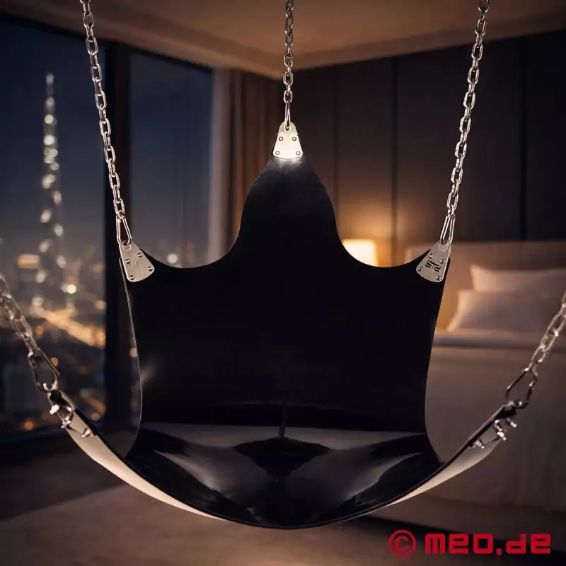 Ultra Sling Deluxe fra Tyskland er av høyeste kvalitet og inspirerer fisting-miljøet i USA, Europa og Asia. Ultra Sling Deluxe er utviklet for evigheten og er laget av et uforgjengelig, men komfortabelt silikonbasert materiale med to kevlarinnlegg og fem opphengspunkter i rustfritt stål.