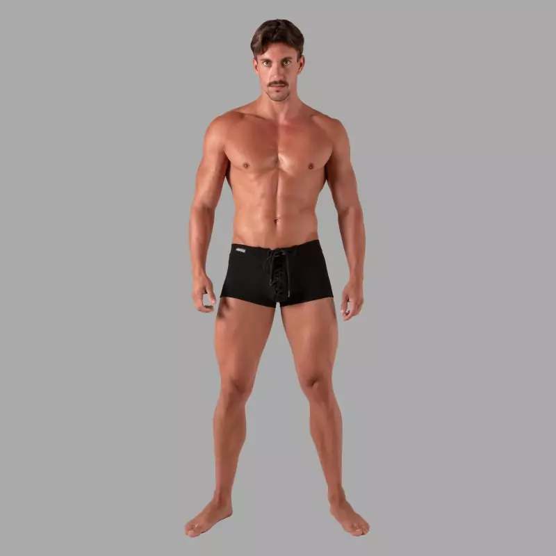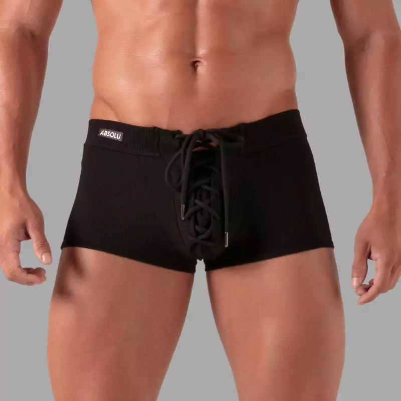 Selvsikker, sexy og maskulin! Laced Trunks kombinerer myk, pustende ribbet jersey med et lavtsittende, tettsittende snitt som former hoftene og baken. Den justerbare snøringen gir en tydelig aksent foran - fra sexy til maksimalt provoserende - mens den integrerte "hemmelige lommen" tilbyr smart funksjonalitet uten å forringe utseendet.