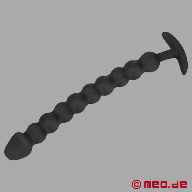 Det smale, koniske hodet glir skånsomt inn i anus, mens de kuleformede segmentene gir merkbar stimulering og progressiv anal uttøyning uten at analpluggen blir unødvendig stor i diameter. Den brede, T-formede basen passer godt mellom baken og forhindrer for dyp penetrering. Det hudvennlige, ikke-porøse silikonet er behagelig mykt, men likevel fast nok til presis håndtering.