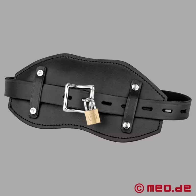 Knebelen vår kan låses sikkert og "dekorativt" foran. Knebelen er utstyrt med en bred lærrem; et stort antall hull i remmen gjør den justerbar i størrelse og garanterer en behagelig passform. Bak munnbindet skjuler det seg en knebel i lær. Knebelen kan selvfølgelig også brukes uten tidslås, eller tidslåsen kan erstattes med en vanlig hengelås.