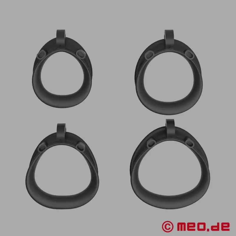 NoPacha ® Mancage kyskhetsbelte har alt du trenger for å kontrollere penis og mannlige hormoner. Med kyskhetsbeltet holdes penis trygt i et såkalt penisbur. Det er veldig enkelt å bruke: På penisburet er det staver som en av de fire medfølgende ringene settes inn i - som passer til omkretsen på penisskaftet. Deretter trekkes penisburet over glans og den slappe penisen. Ringen festes til penisroten. Testiklene plasseres mellom eller under, i åpningen som dannes. Buret kan selvfølgelig også lukkes. Med NoPacha ® Mancage kyskhetsbur på plass og helt lukket, er all seksuell aktivitet strengt forhindret.