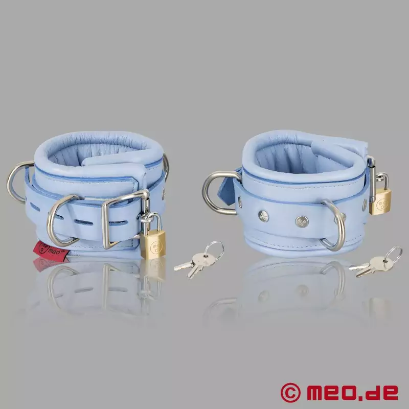 Com as algemas de tornozelo em pele com fecho da coleção Malibu, a MEO® apresenta um equipamento BDSM esteticamente sofisticado e ao mesmo tempo intransigentemente funcional. A pelle azul-celeste de alta qualidade realça deliberadamente os contrastes visuais e traz uma lufada de ar fresco às tuas sessões de bondage. A dominação e a elegância combinam-se na perfeição para criar experiências BDSM únicas que não deixam nada a desejar.