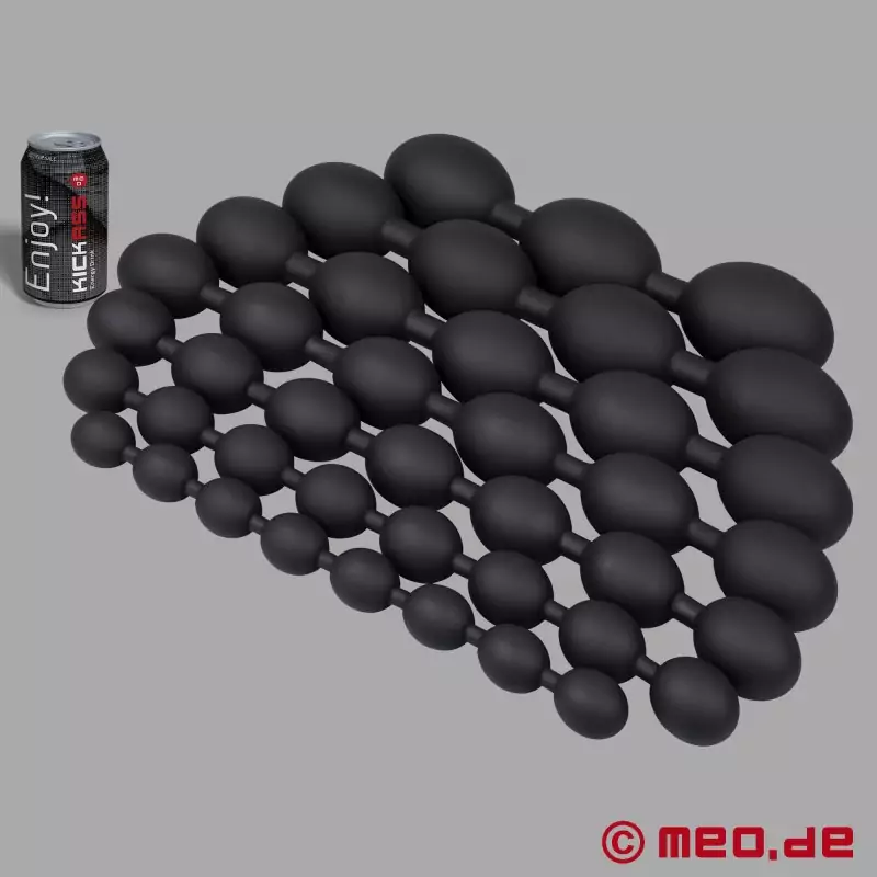 Começa devagar e suavemente com o tamanho S ou vai diretamente para a versão XXL ou XXXXL para esticar o ânus ao máximo. Cada tamanho traz os seus próprios desafios e oferece uma adaptabilidade óptima graças à ligação flexível das bolas individuais. A superfície lisa garante uma penetração sem esforço no ânus, enquanto tu ou o teu parceiro determinam a velocidade e a profundidade. Quanto maiores forem as bolas, mais intensa será a experiência de plenitude, pressão e devoção total.