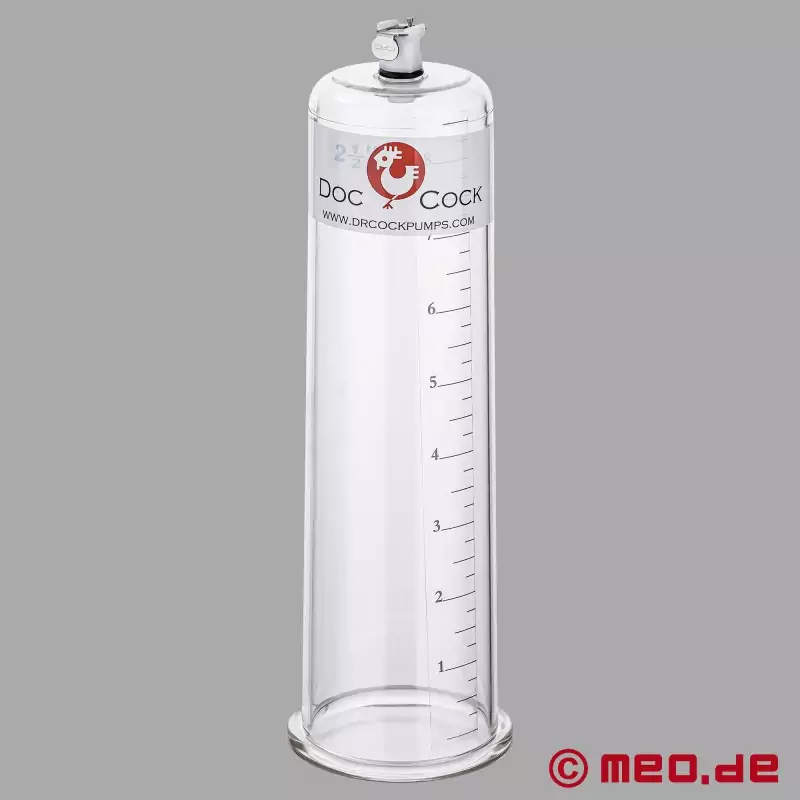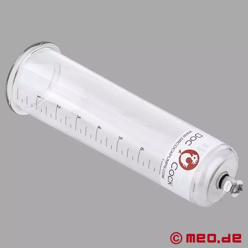 Os cilindros para aumentar o pénis do Dr Cock são feitos de acrílico robusto e transparente e têm uma forma ergonómica para se adaptarem perfeitamente ao pénis. A abertura arredondada assegura um elevado nível de conforto para o utilizador. Os cilindros de vácuo estão equipados com um acoplamento de válvula industrial de fecho automático que permite ligar e desligar rapidamente a mangueira da bomba manual DRCO™ (encomendar separadamente).