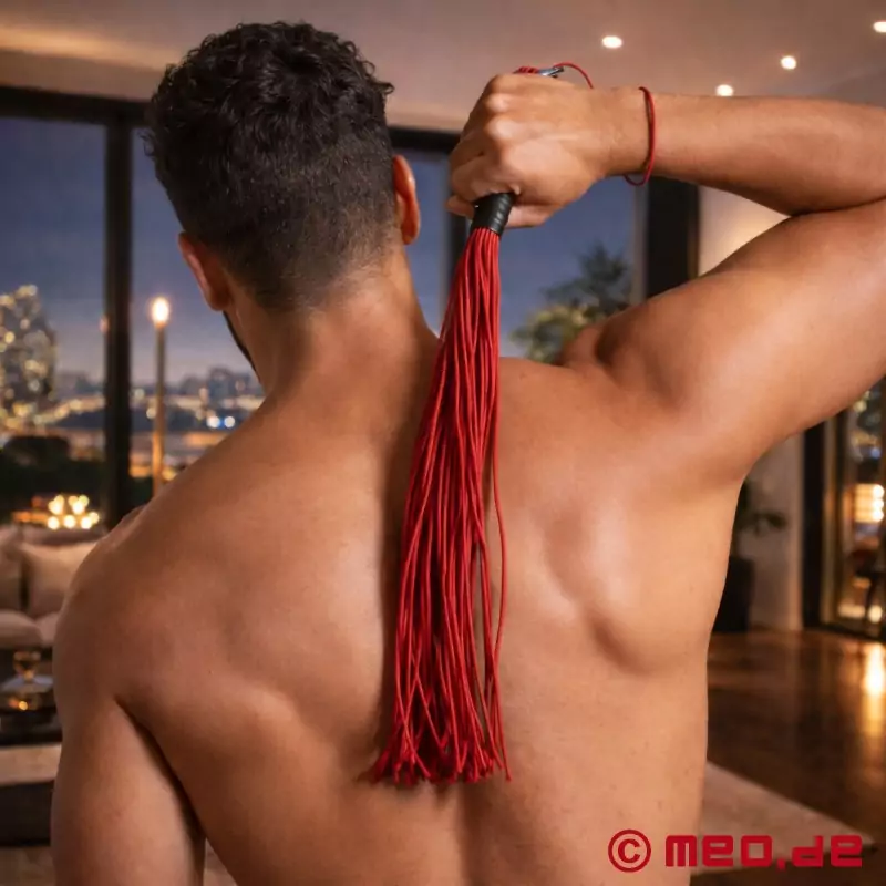 Com a sua forma esguia, tiras cobertas de tecido vermelho e aparência marcante, o Infernum™ não é apenas funcional, mas também faz uma forte declaração visual. Um flogger BDSM para todos os que apreciam um efeito claro, estimulação direta e jogos poderosos com intensidade.