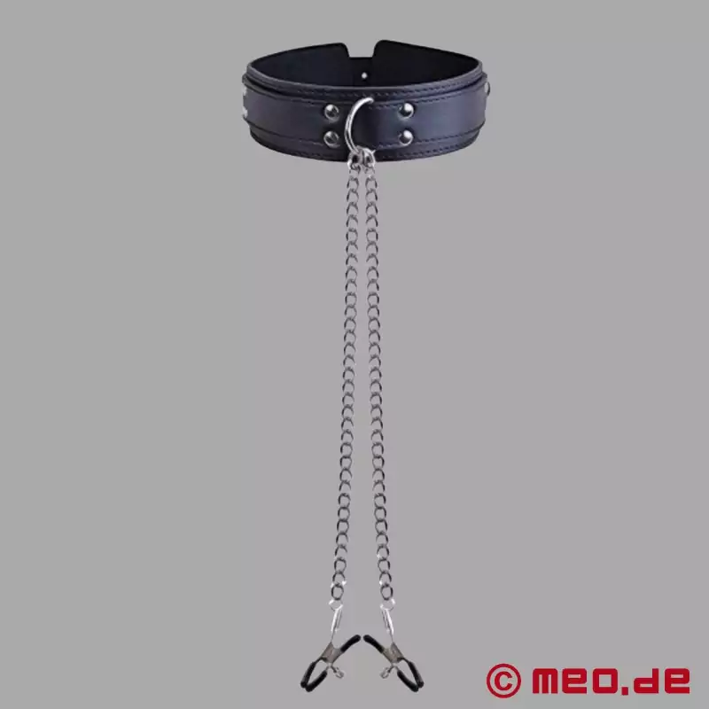 Como utilizo a coleira BDSM com grampos para mamilos?