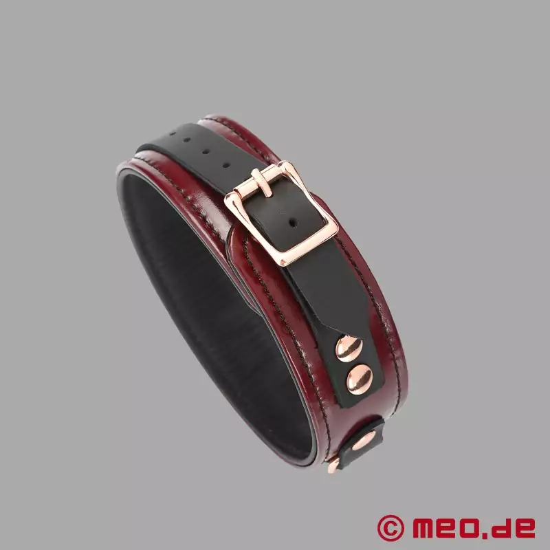 Com a sua cor expressiva, um vermelho bordeaux profundo, esta coleção da MEO® não só simboliza a elegância, o amor, a paixão, o romance e o calor, como também pretende realçar a ligação emocional entre Top e Sub durante o bondage. Os elementos metálicos em ouro rosa, que combinam perfeitamente com o design, dão aos produtos um contraste maravilhoso.